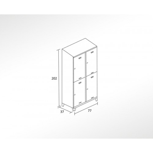 Metal Dörtlü, Yarım Kapılı Eğik Şapkalı Soyunma Dolabı
